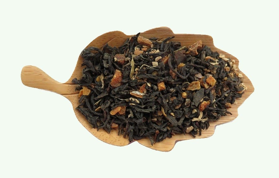 The tea leaves are picked from old trees growing in the Vietnamese mountains and processed in a small, traditional cooperative – Van Chan. Then they are blended with Vietnamese cinnamon, Indian ginger, Sri Lankan cardamom, and Italian mandarin.