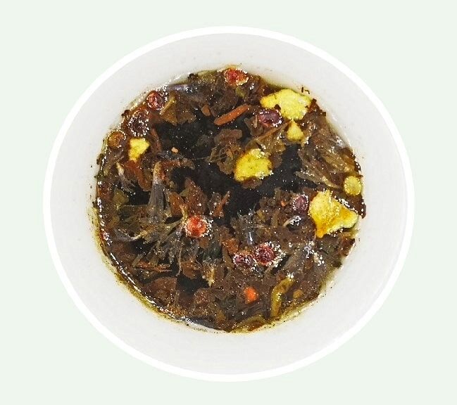 Ingredients: Ceylon black tea, cloves, cinnamon, sumac berries, orange peel, cornflower petals, snowflakes (sugar, rice flour, cocoa butter, tragacanth, natural flavours).